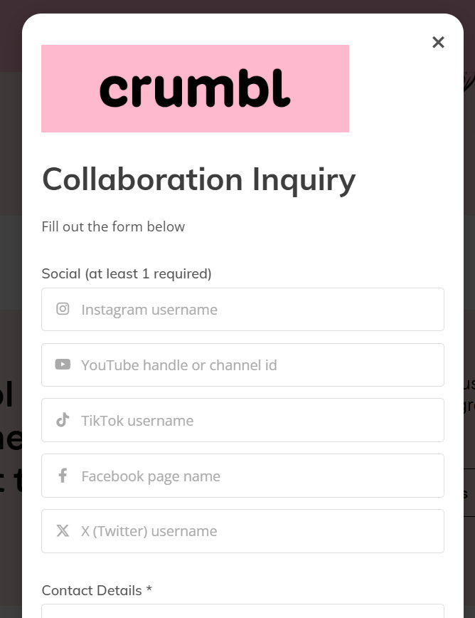 crumbl collaboration inquiry form