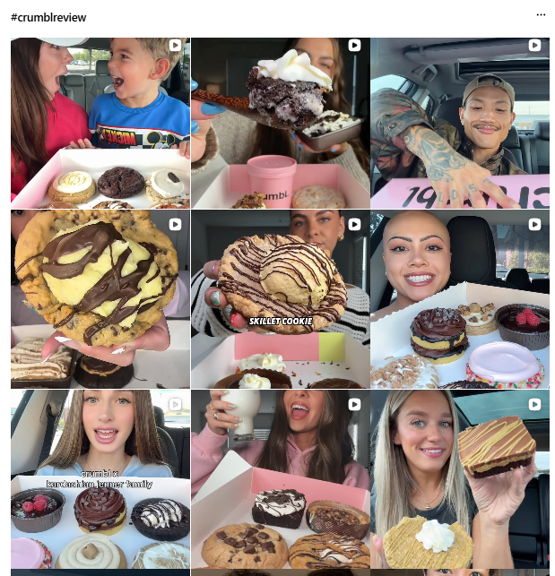 #crumblreview and #crumbllineup act as containers for all of this. Crumbl keeps the content easy to find without forcing it into one style. The hashtag holds polished videos and casual clips in the same space.