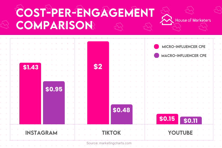 Micro-influencer marketing typically delivers CPMs of around $4–$5. This makes them more efficient from the start.