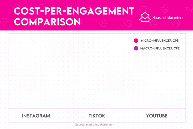 Micro influencers cost ~ $0.20 per engagement, compared to around $0.33 per engagement for macro influencers. Micro influencers drive a good bargain in collaboration fees as well. Their lower costs allow better creator diversification and testing for campaign performance.