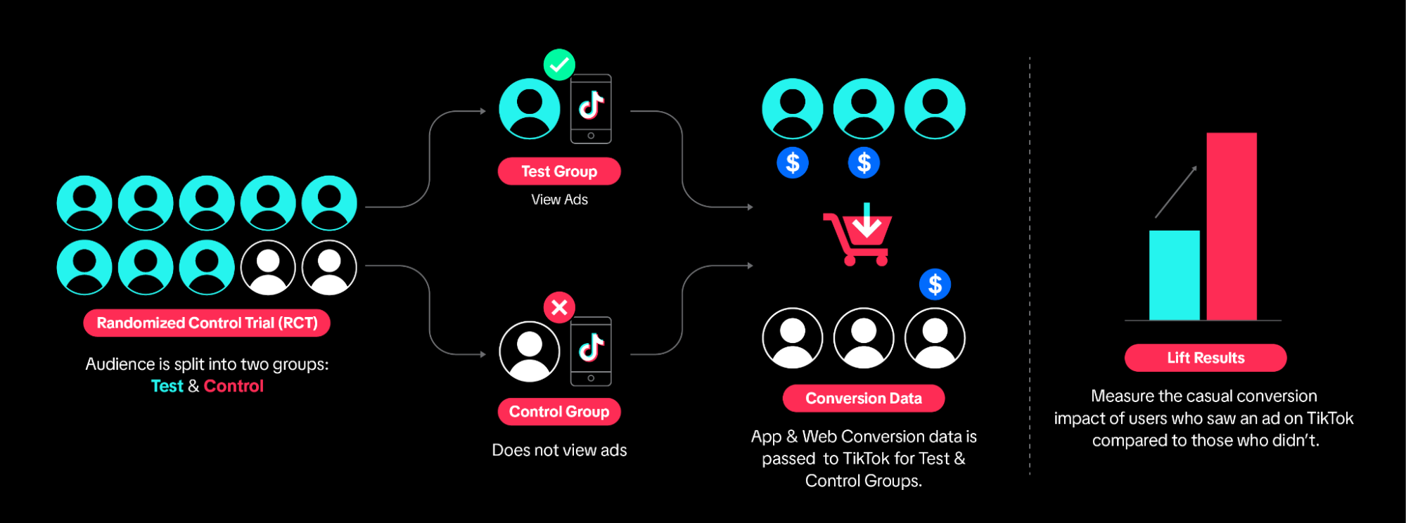 3. Tiktok compares the conversions in each group to measure the lift from your TikTok ads.