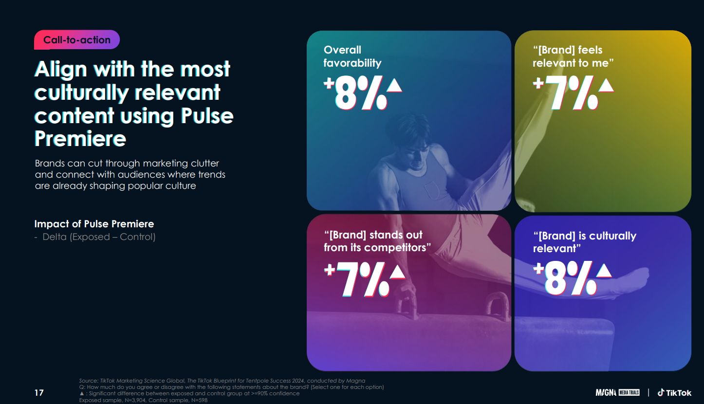 The TikTok Pulse suite ensures brand messaging appears alongside top-trending content.