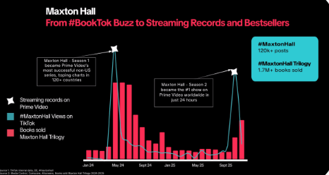 One of the clearest examples of this is the book Maxton Hall and what its TikTok buzz did for it. The book first got popular on BookTok, long before it was adapted. That online buzz eventually landed it a Prime Video series deal, which went on to become Prime Video’s most successful non-US title.