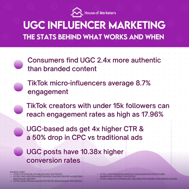 If you want a team that builds both influencer strategy and UGC campaigns, a TikTok influencer agency like House of Marketers can help.
